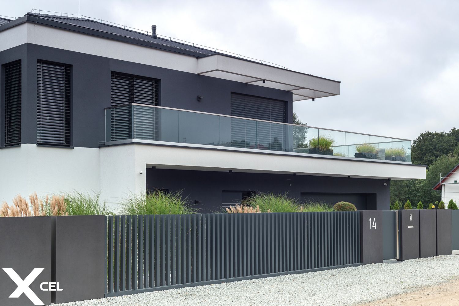 Die aus dem Boden ragenden Aluminiumprofile haben eine untypische vertikale Anordnung. Das moderne Arete Vertico-System ermöglicht Ihnen die Schaffung leichter und attraktiver Zäune. Vertico-Profil 60 x 120 mm, Dehnungsfuge 100 m.