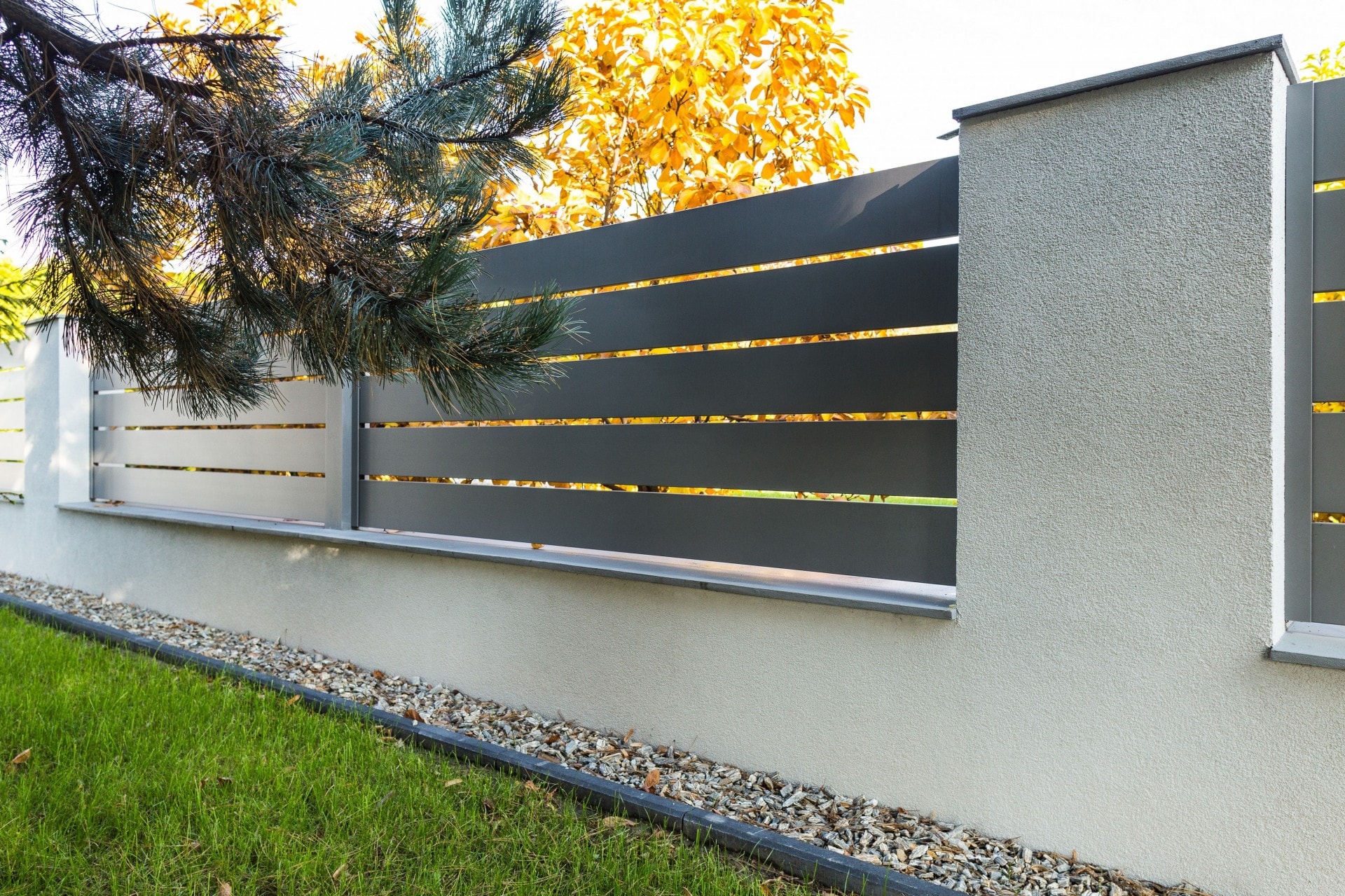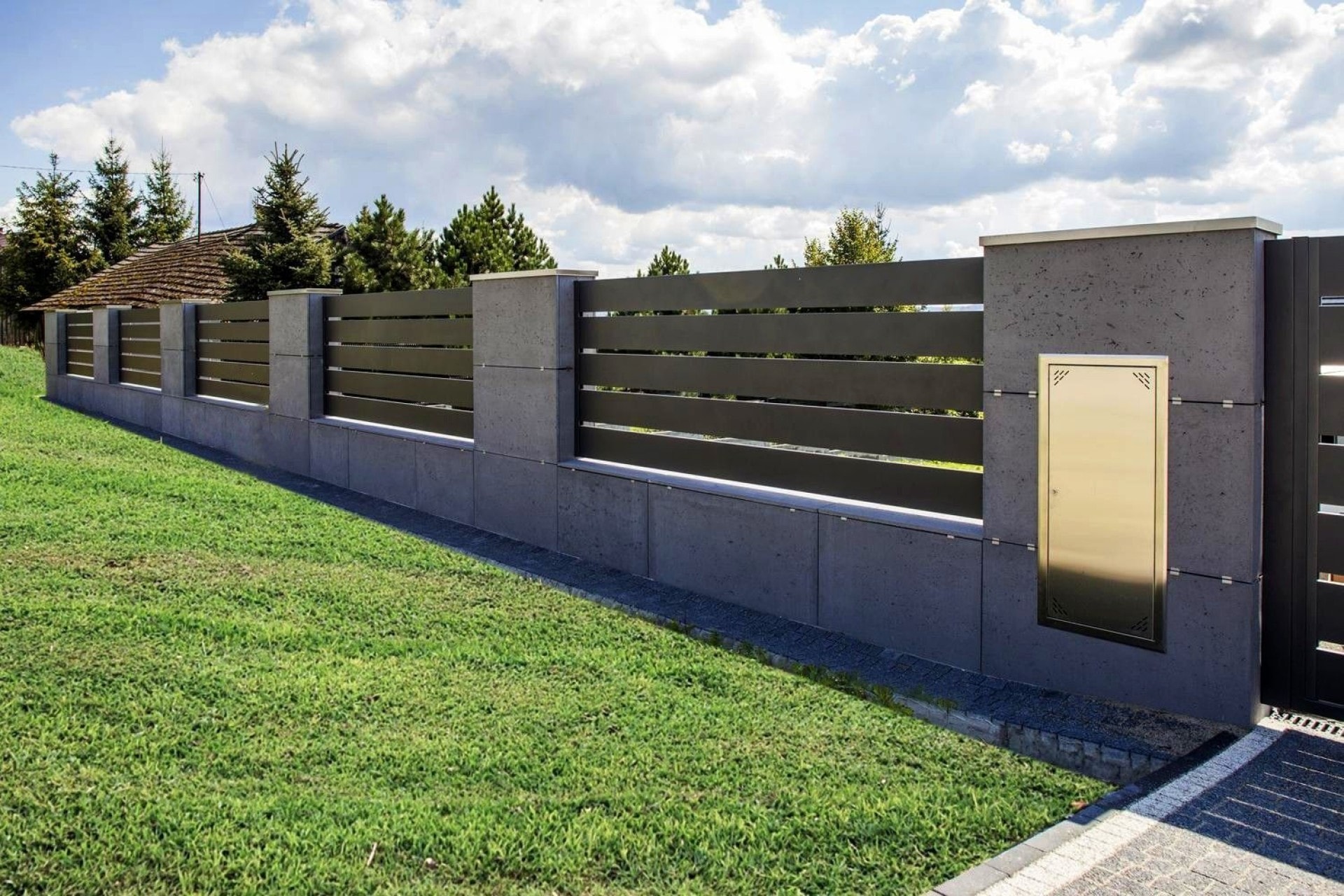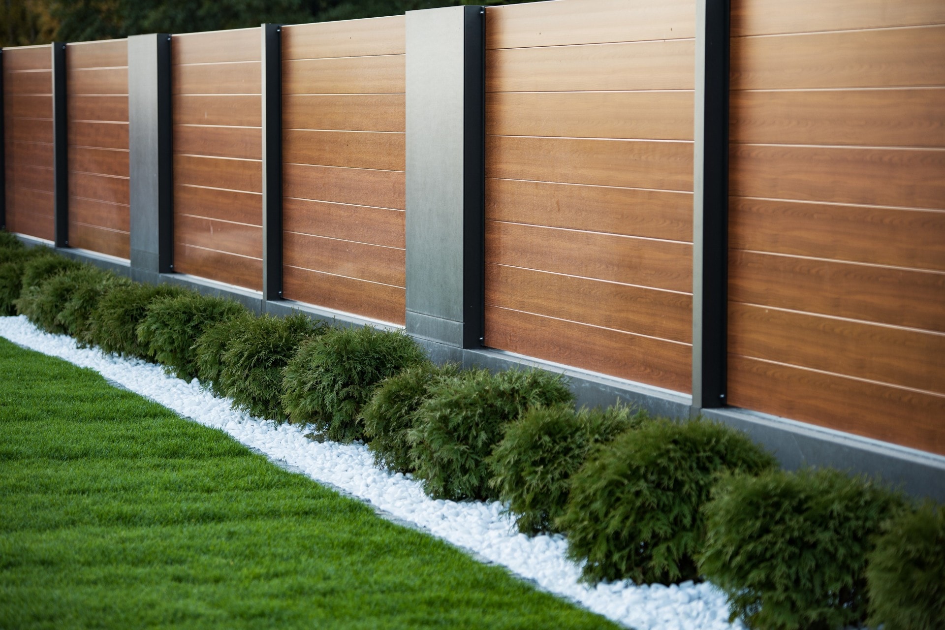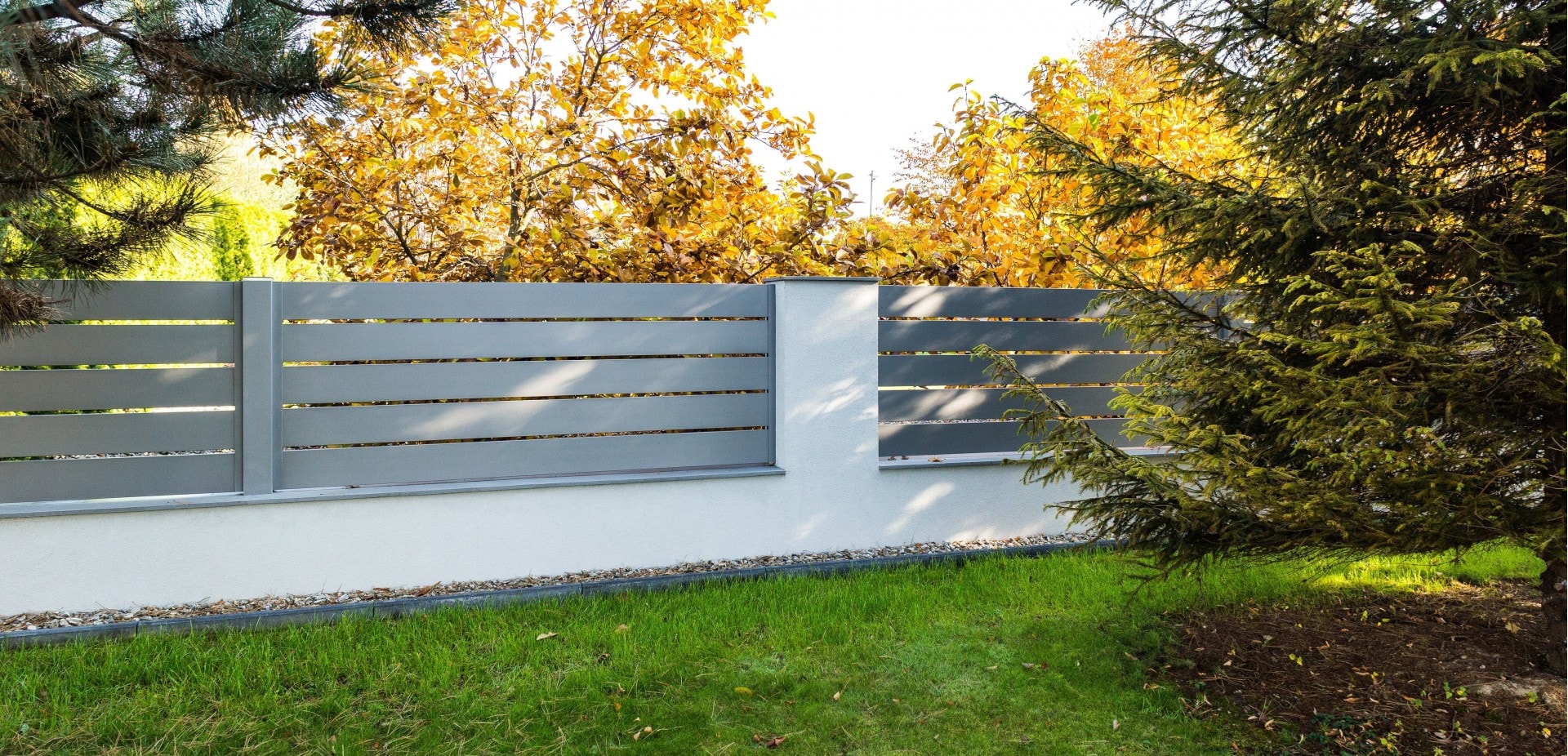 Horizon Massive ist ein moderner Zaun, der aus Aluminiumprofilen mit einer Breite von 200 mm besteht. Spezielle Querverstärkungen sind von außen unsichtbar und garantieren eine hohe Haltbarkeit der Konstruktion. Die Profile des Horizon Massive Systems bilden eine kompakte Barriere, die äußere Geräusche dämpft und Sicherheit sowie Privatsphäre bietet. Wenn Sie eine intime Atmosphäre im Garten schaffen möchten, ist Horizon Massive die Antwort auf Ihre Erwartungen.