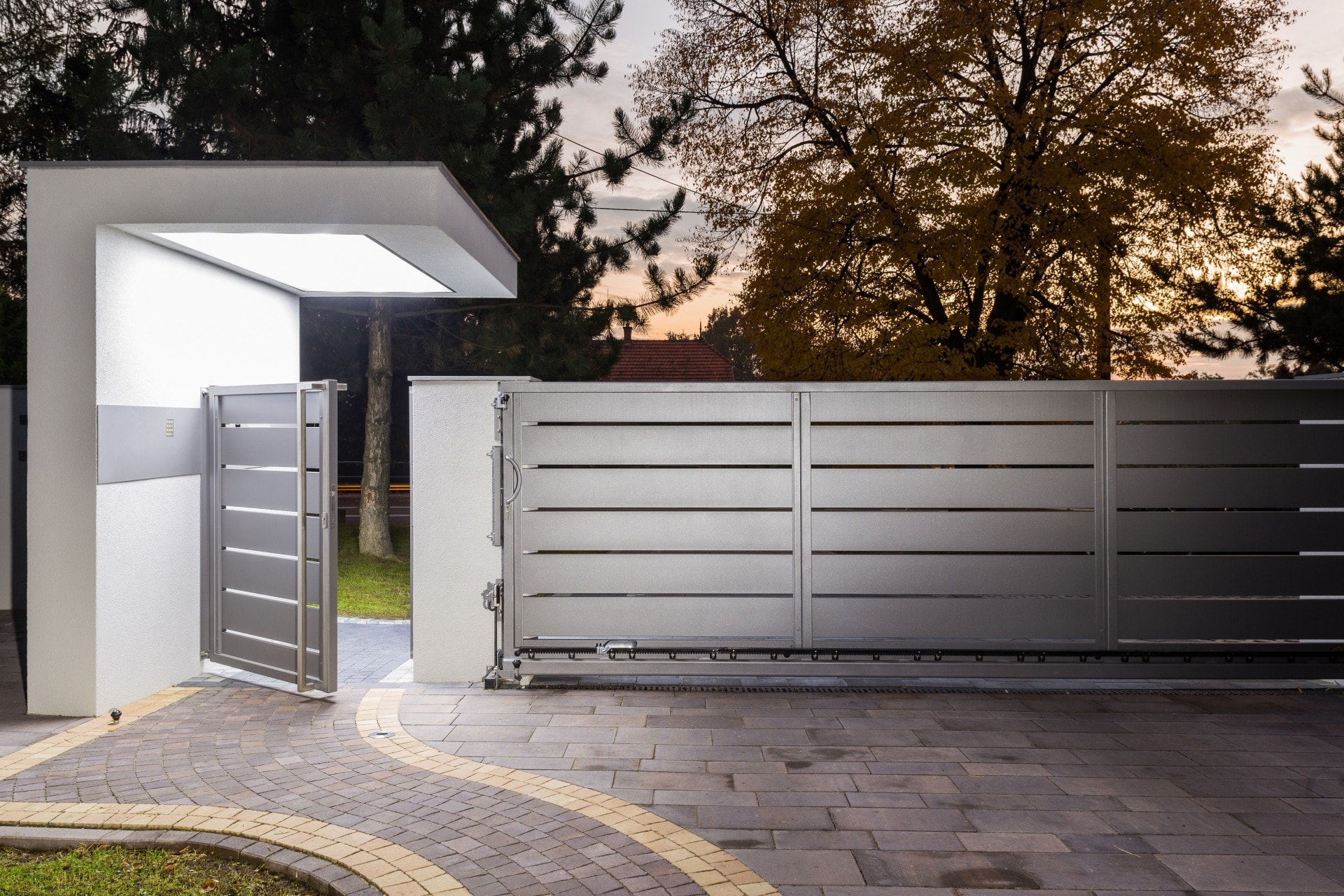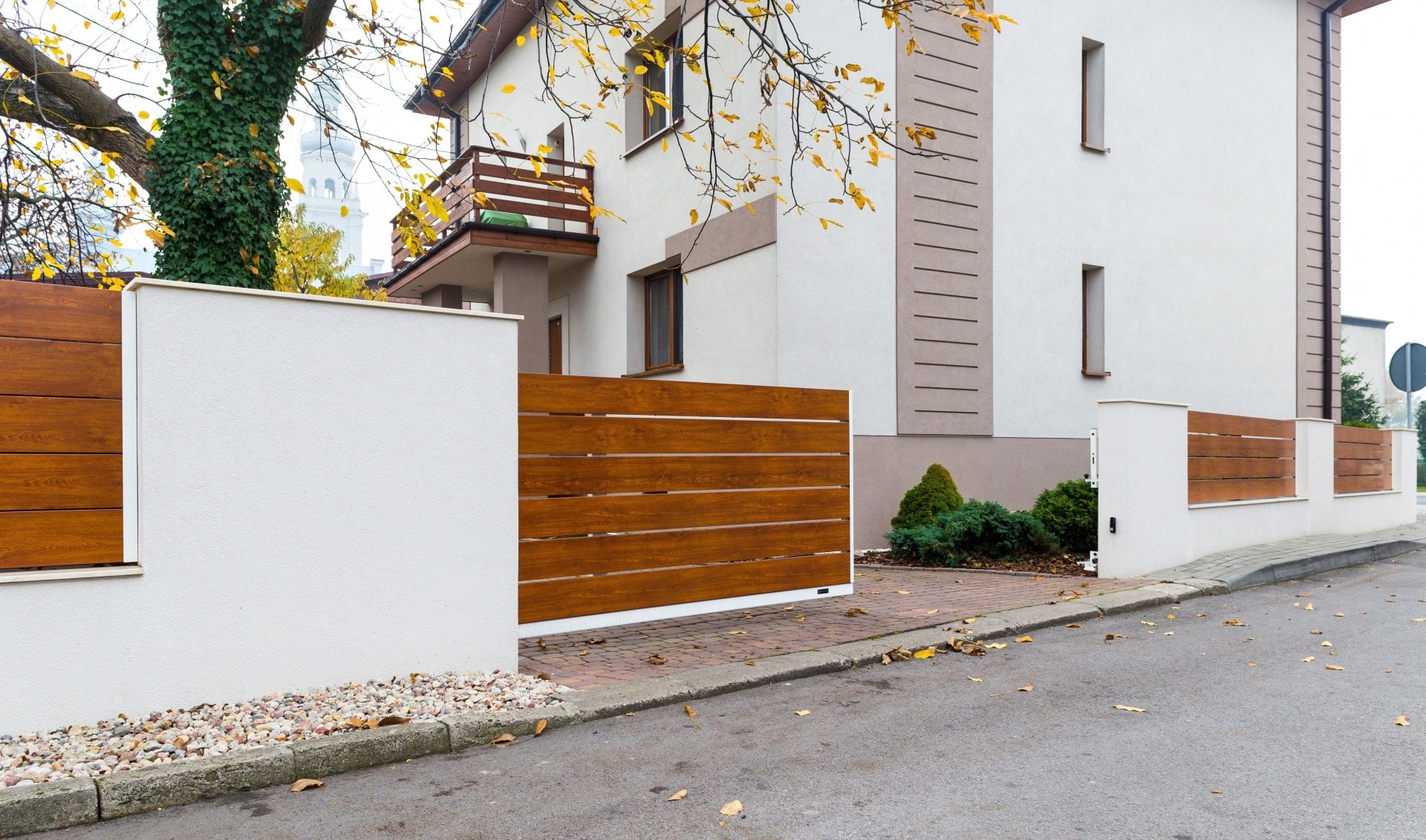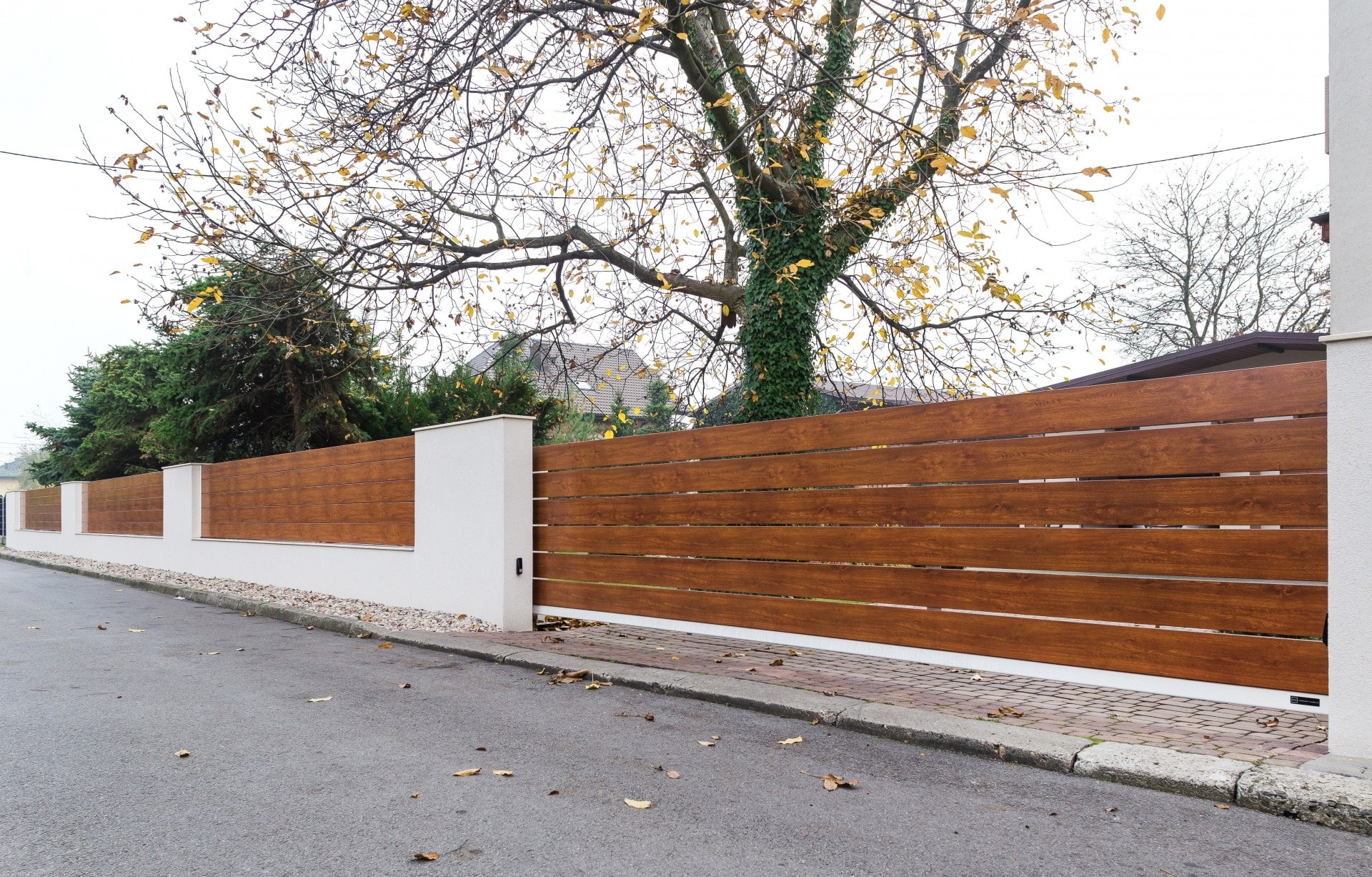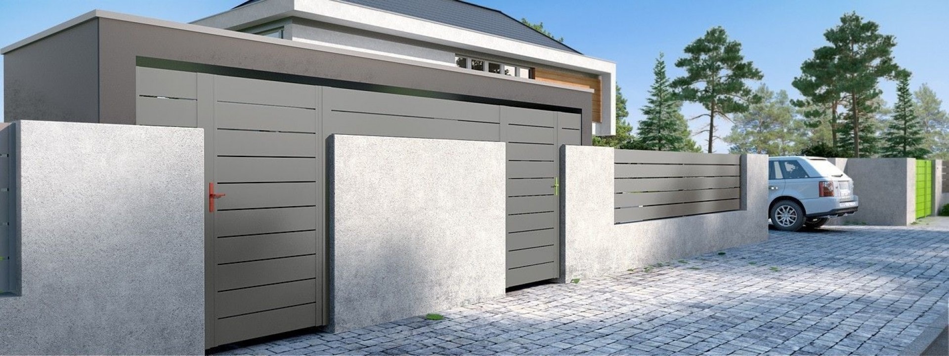 Das klassische Doppelflügeltor ist nach wie vor sehr beliebt. Diese Art von Lösung ist besonders ideal für schmale, aber tiefere Grundstücke. Der langlebige Stahlrahmen bildet die Basis für alle Horizon Zaunpaneele, sodass das Tor eine ästhetische Erweiterung des Zauns darstellt. Unsere Lösungen sind voll funktionsfähig – das Tor kann mit standardmäßiger oder unterirdischer Automatisierung ausgestattet werden.