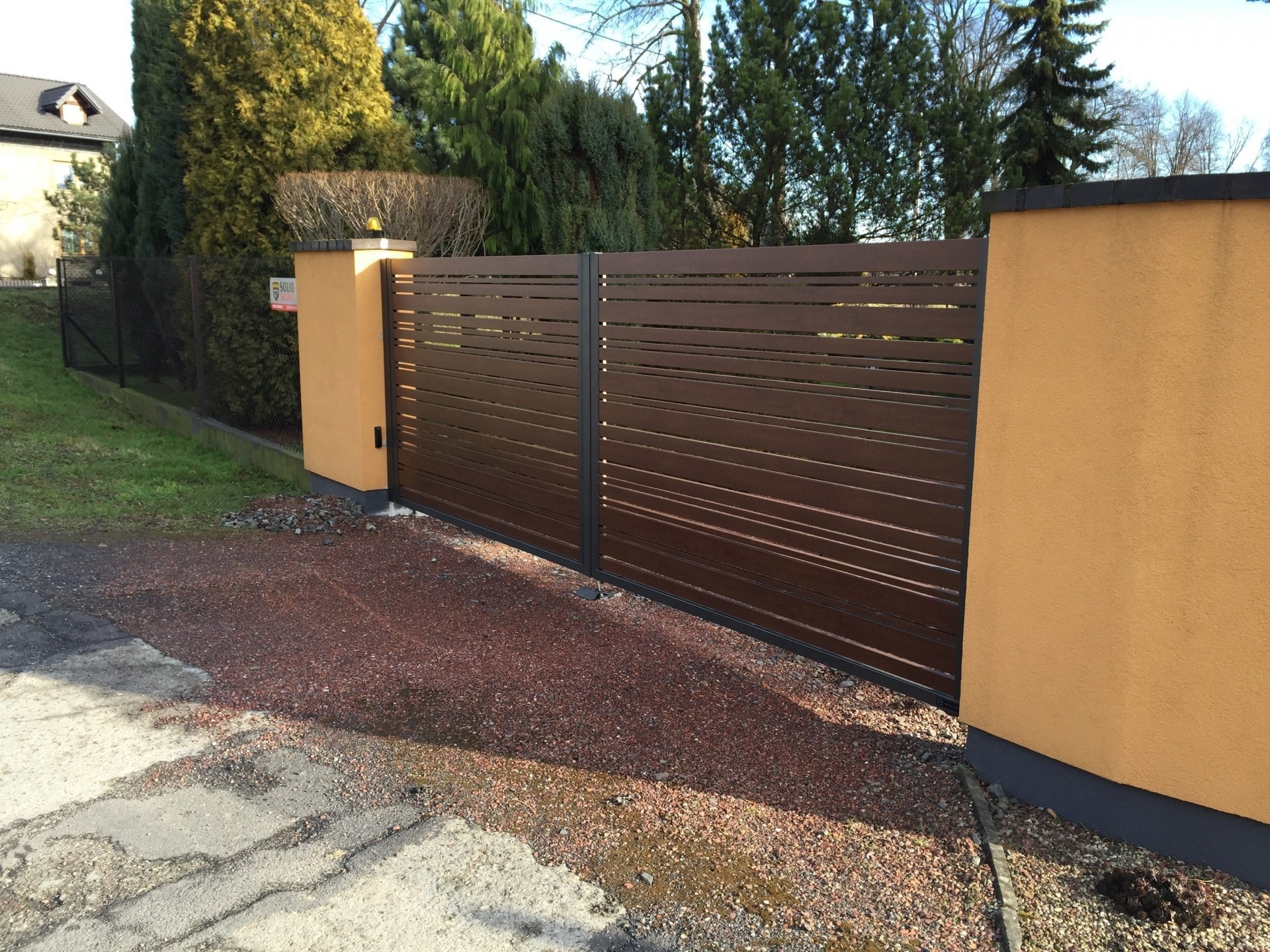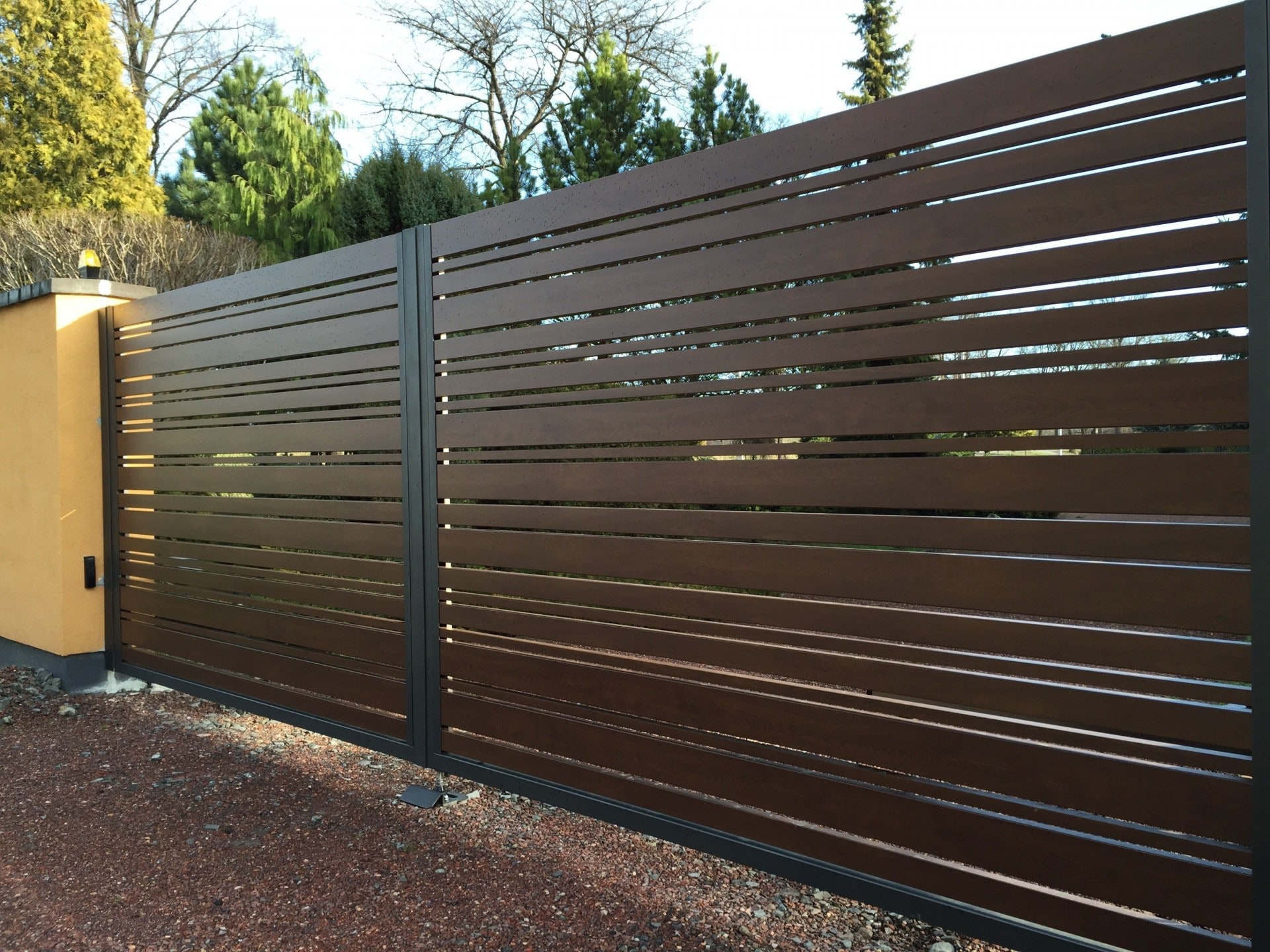 Das klassische Doppelflügeltor ist nach wie vor sehr beliebt. Diese Art von Lösung ist besonders ideal für schmale, aber tiefere Grundstücke. Der langlebige Stahlrahmen bildet die Basis für alle Horizon Zaunpaneele, sodass das Tor eine ästhetische Erweiterung des Zauns darstellt. Unsere Lösungen sind voll funktionsfähig – das Tor kann mit standardmäßiger oder unterirdischer Automatisierung ausgestattet werden.