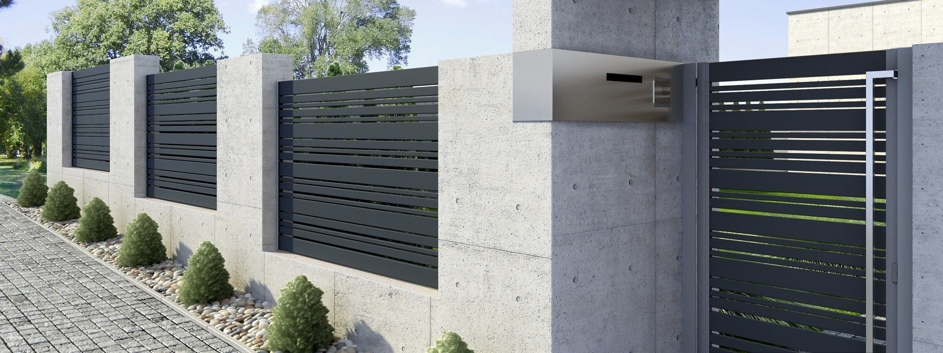 Moderne Xcel Zäune zeichnen sich durch eine minimalistische Form aus, die Sie leicht an den architektonischen Stil des Gebäudes anpassen können.