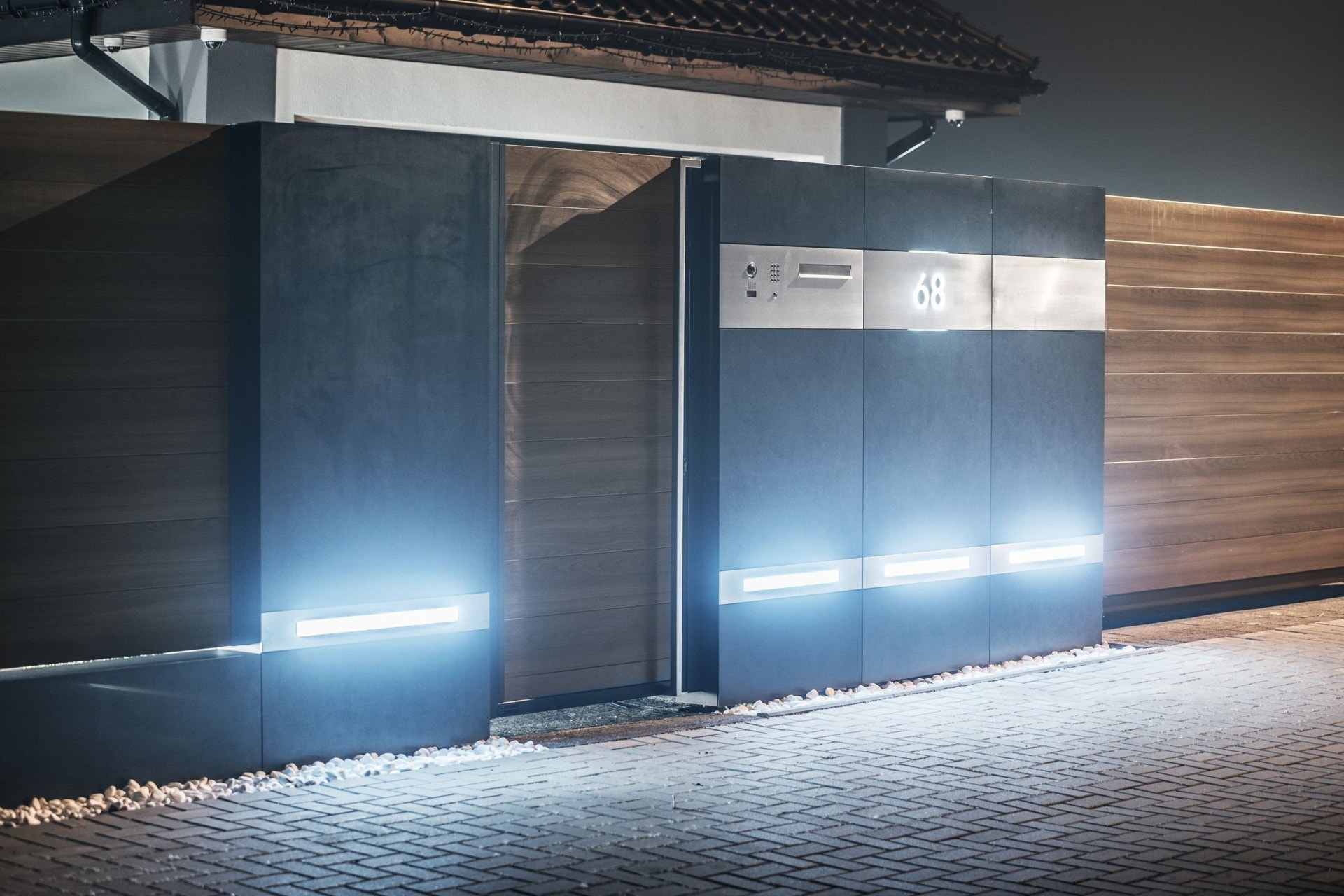 LED-Beleuchtung kann in gemauerte Pfosten und Fundamente eingebaut oder auf Aluminium-Pfosten installiert werden.