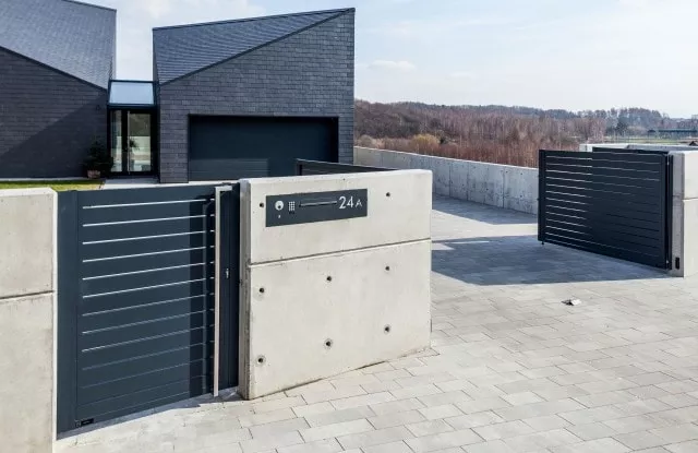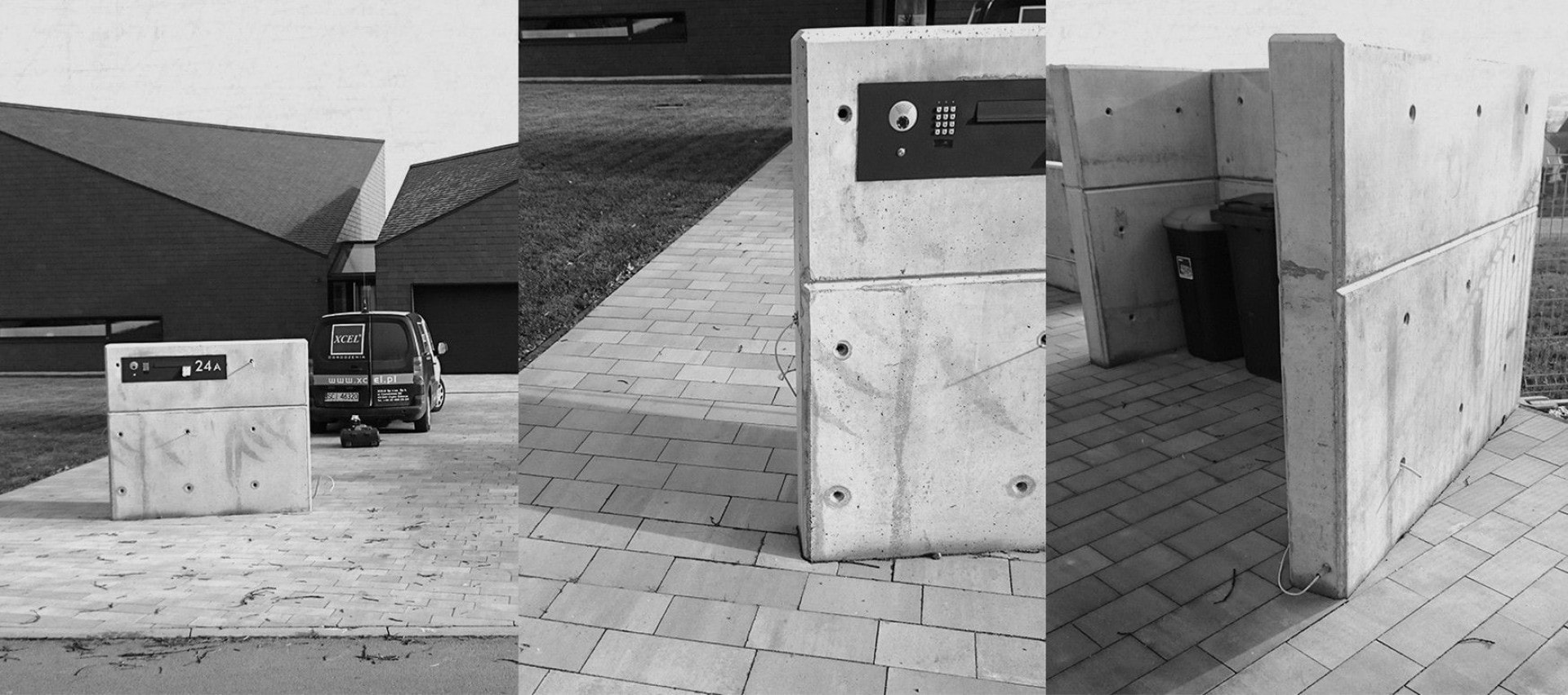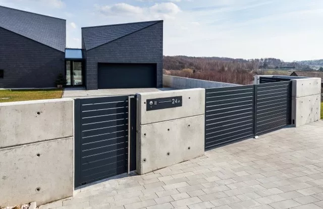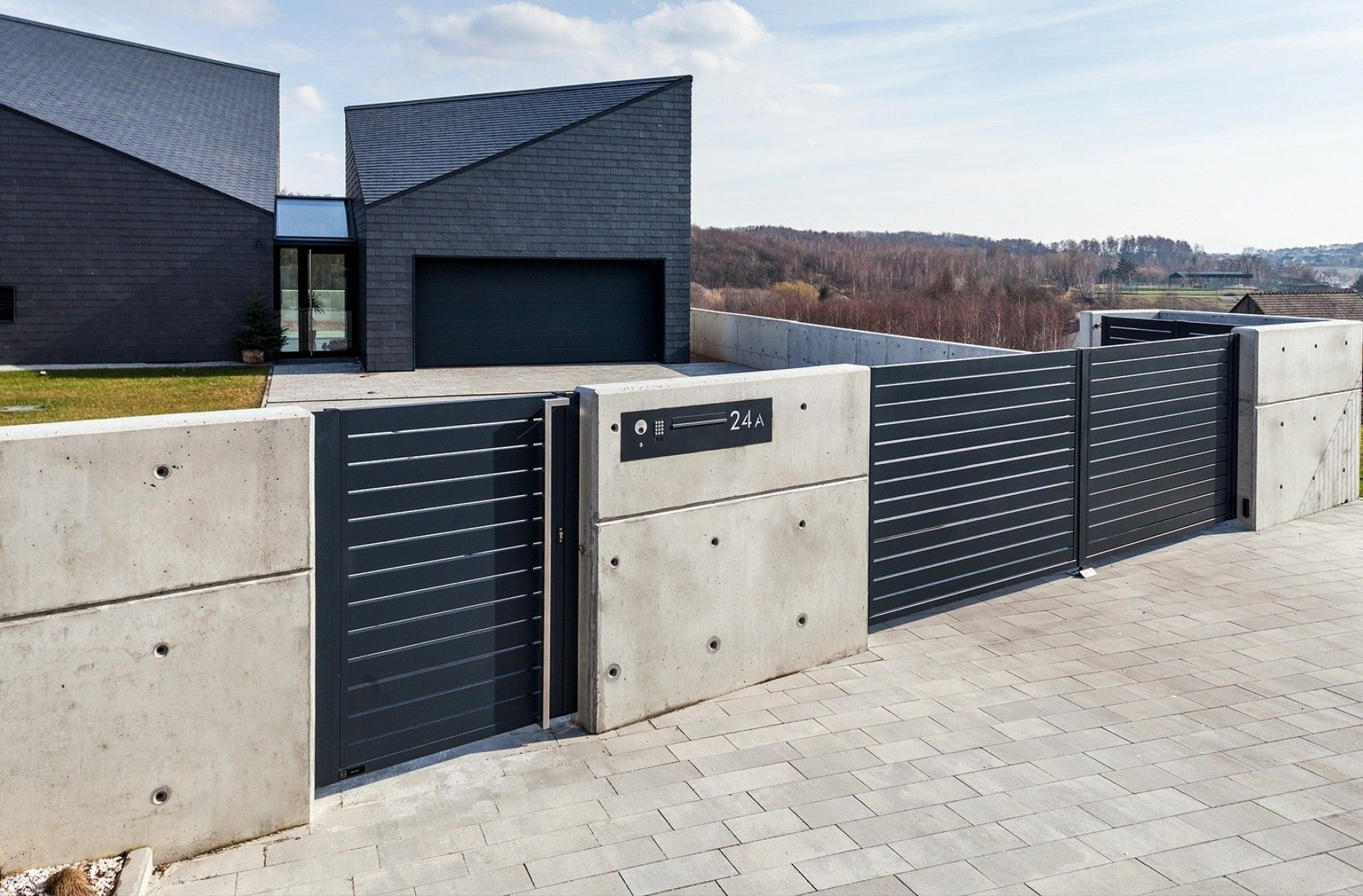 The walls of clean, poured architectural concrete are an important element of the architectural design and have been provided by the investor. Their form was consulted with our designer to ensure compatibility with the Xcel gate and wicket. The raw imperfection of the concrete fits perfectly into the aesthetics of the entire project.