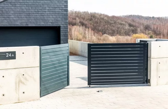 Das klassische zweiflügelige Tor erfreut sich nach wie vor großer Beliebtheit. Diese Art von Lösung ist besonders für schmale, aber tiefe Grundstücke ideal.