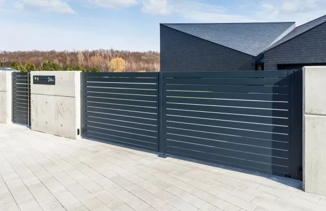Der robuste Stahlrahmen ist die Basis für die Horizon-Zaunelemente Ihrer Wahl, sodass das Tor eine ästhetische Erweiterung des Zauns darstellt. Unsere Lösungen sind voll funktionsfähig, sodass das Tor mit Standard- oder Unterflurautomatik ausgestattet werden kann.